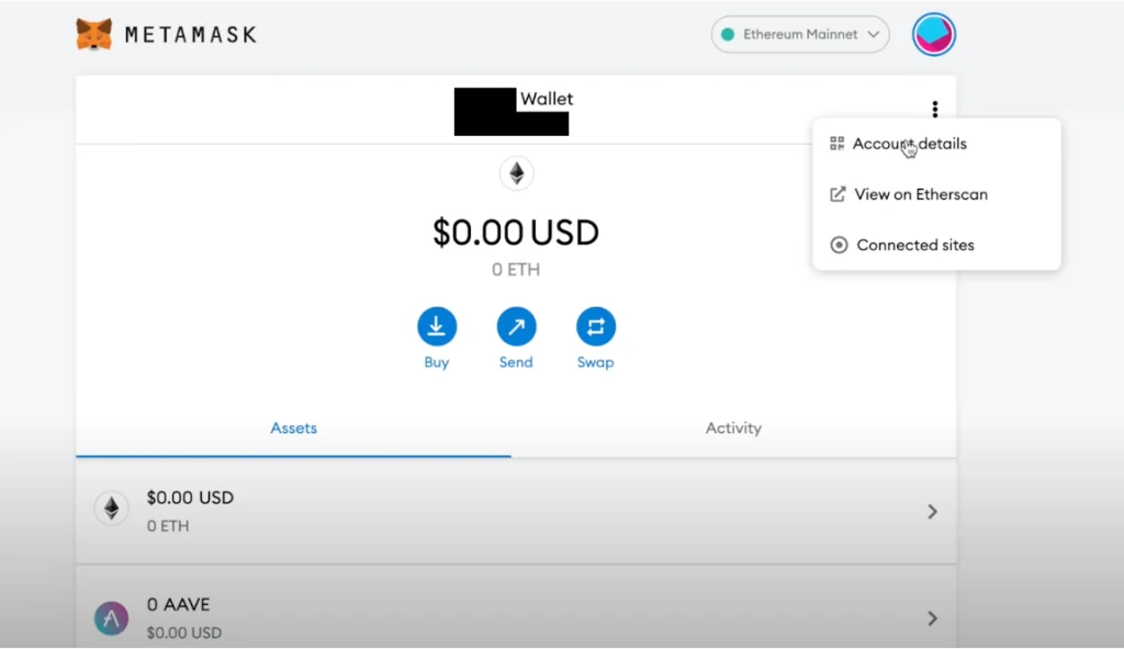 Per ricevere l’NFT, clicca sui tre puntini verso destra della tua homepage e poi seleziona “Dettagli account”.