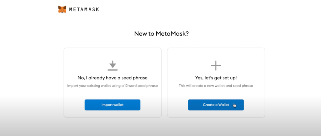 Dopo aver cliccato su “Get Started”, dovrai importare un portafoglio esistente o crearne uno se non ne hai già uno. In questa guida ti guideremo passo dopo passo verso la creazione di un portafoglio.